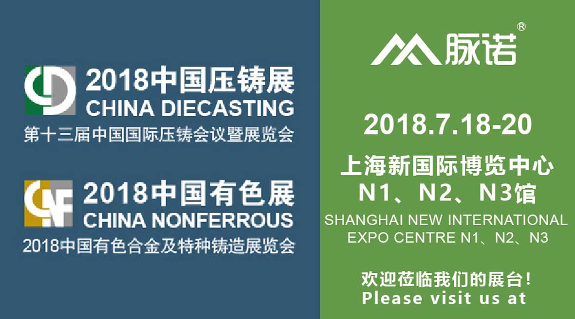 上海脈諾參加2018年07月18日—20日在上海新國際博覽中心開幕的第十三屆中國國際壓鑄會(huì)議暨展覽會(huì)。